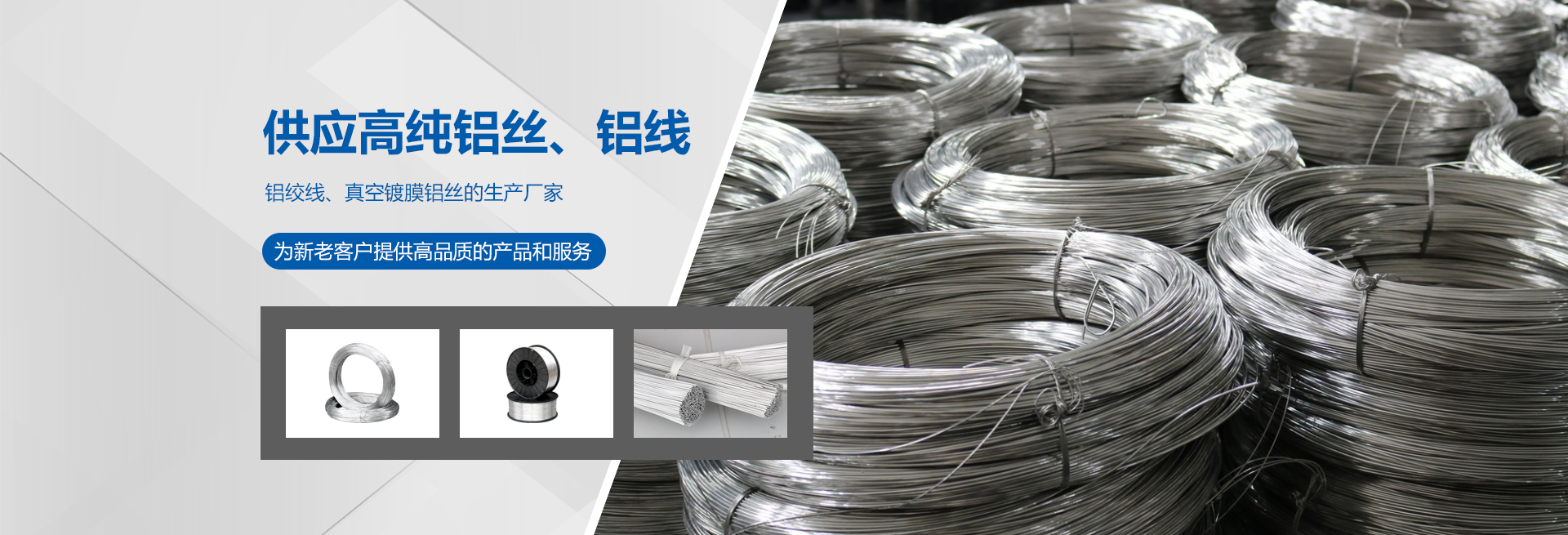 高純度鋁絲:公司主打產(chǎn)品。SGS認證產(chǎn)品,適用于真空鍍鋁。純度99.9%,可為客戶量身定做生產(chǎn)的各盤裝鋁絲、鋁直條。產(chǎn)品應(yīng)用領(lǐng)域十分廣泛,如:真空鍍鋁膜、電器儀表、電子、家電業(yè)、電線電纜業(yè)、建筑裝飾業(yè)、五金裝飾業(yè)、IT電腦業(yè)、廣告裝飾業(yè)、醫(yī)療器械、工藝制品、防腐制品(大型港口、橋梁、碼頭)、食品包裝容器、紡織服裝等。