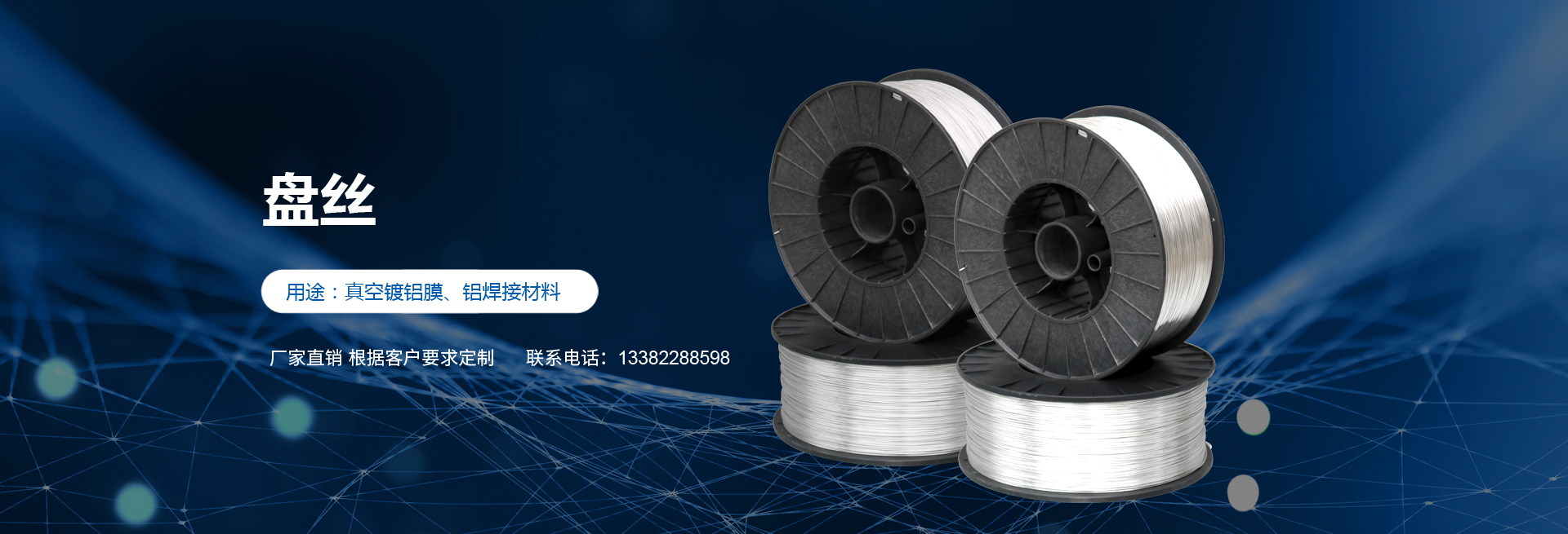 高純度鋁絲:公司主打產(chǎn)品。SGS認證產(chǎn)品,適用于真空鍍鋁。純度99.9%??蔀榭蛻袅可矶ㄗ錾a(chǎn)的各盤裝鋁絲。產(chǎn)品應(yīng)用領(lǐng)域十分廣泛,如:真空鍍鋁膜、電器儀表、電子、家電業(yè)、電線電纜業(yè)、建筑裝飾業(yè)、五金裝飾業(yè)、IT電腦業(yè)、廣告裝飾業(yè)、醫(yī)療器械、工藝制品、防腐制品(大型港口、橋梁、碼頭)、食品包裝容器、紡織服裝等。